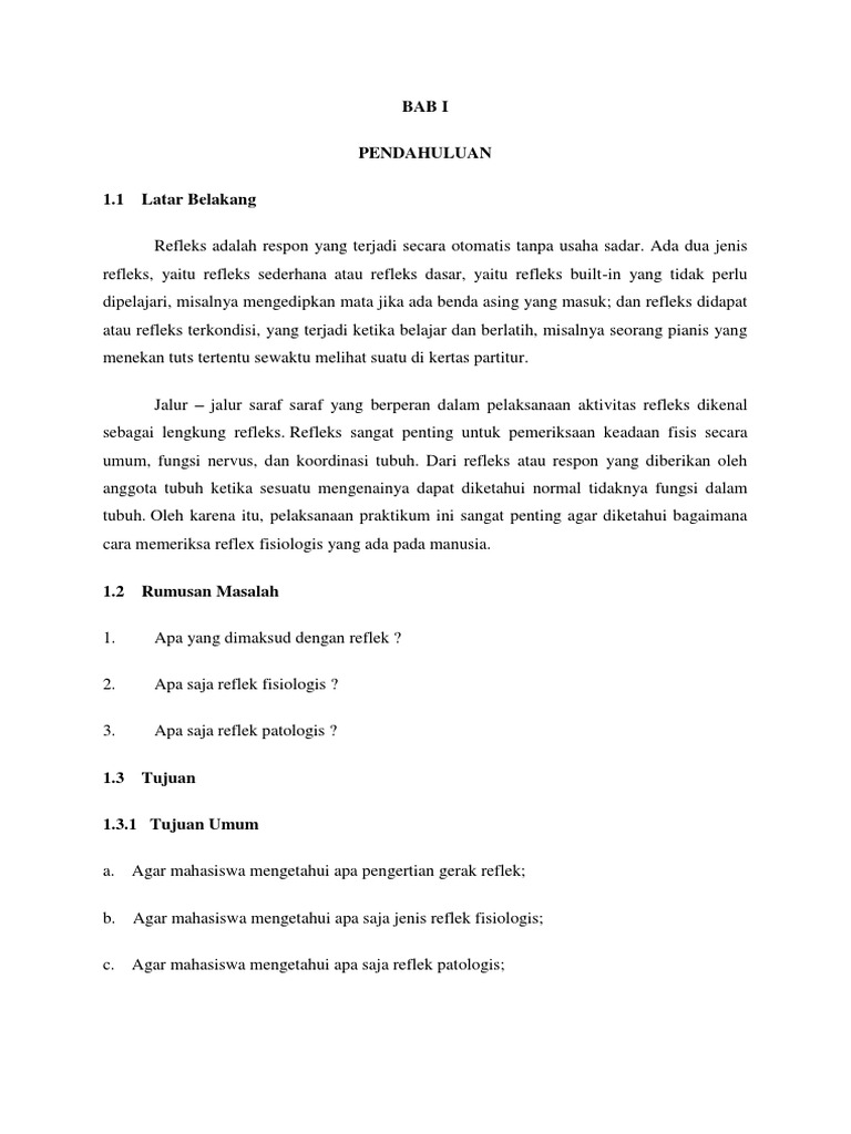 Sinaps yang terdapat di susunan saraf pusat atau di ganglion simpa. Bab i pendahuluan 1.1 latar belakang masalah pencemaran lingkungan merupakan masalah kita bersama, yang semakin penting. Refleks patella yang muncul secara normal menunjukkan penghantar refleks dalam keadaan normal. Oleh pakdosen diposting pada 5 desember 2020. Diposting oleh admin di 19.56 | kamis, 03 mei 2012.